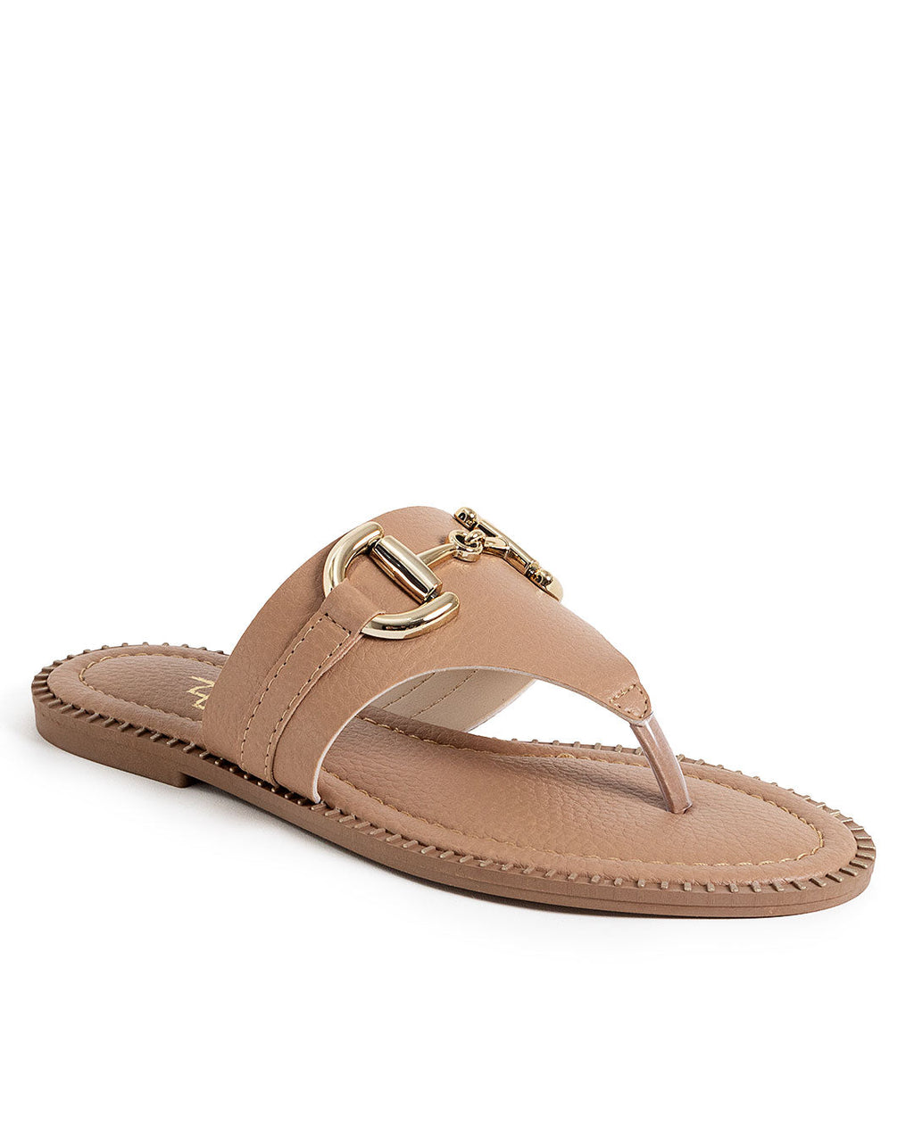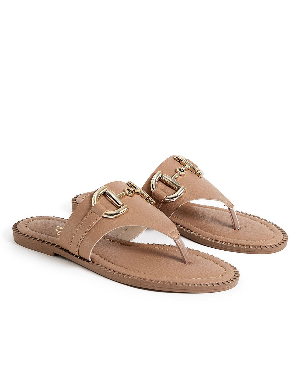 Sandália feminina modelo de dedo, confeccionada em napa na cor pele (nude), com design minimalista e acabamento sofisticado. Possui tira larga sobre o peito do pé adornada com uma fivela dourada decorativa, que confere um toque de elegância e modernidade ao visual. A palmilha anatômica foi desenvolvida para proporcionar melhor ajuste e conforto aos pés, tornando o modelo ideal para uso prolongado em diferentes ocasiões, unindo praticidade e versatilidade de forma atemporal.